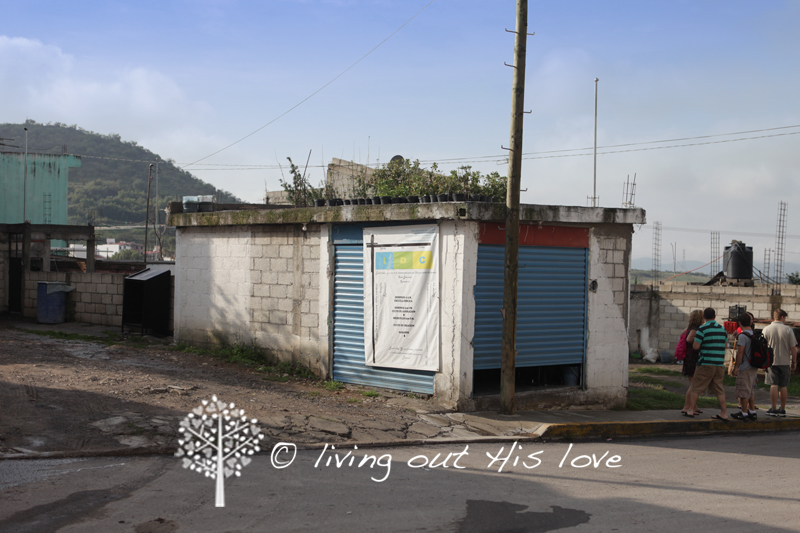 After breakfast on Sunday, we helped get everything set up for church. Another storm was threatening the service, so we helped put tarps up outside of the church. I tried to take some pictures so everyone could get a feel for the area ... it's in the middle of other shops and businesses but WOW, the mountains in the background are breathtaking!